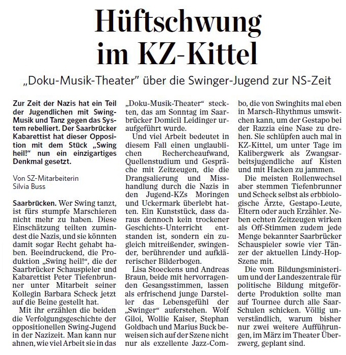 Über die Uraufführung am 11.12.2016 im Theater LEIDINGER, Saarbrücken berichtete die Saarbrücker Zeitung: